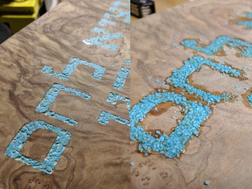 I sourced the wood from an eBay seller, designed the lettering in Illustrator, and carved the letters using my CNC. The inlay process, which I discovered online, involved the use of cyanoacrylate glue.